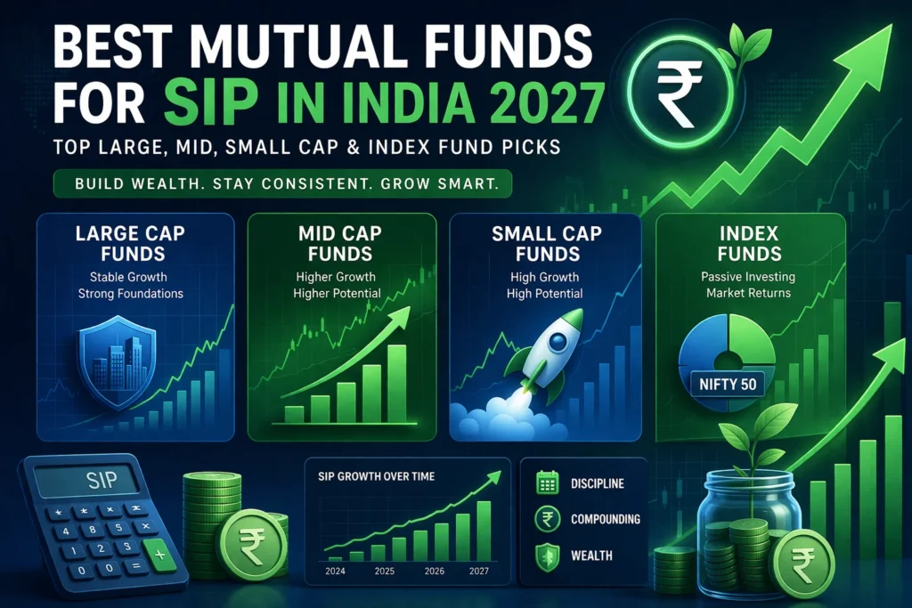 Best Mutual Funds for SIP in India 2027: Choosing mutual funds for 2027 is less about finding one “magic” scheme and more about building a shortlist across the right categories: large cap, mid cap, small cap, and index funds. Large-cap funds are usually used as core equity exposure. Mid-cap and small-cap funds are usually for […]